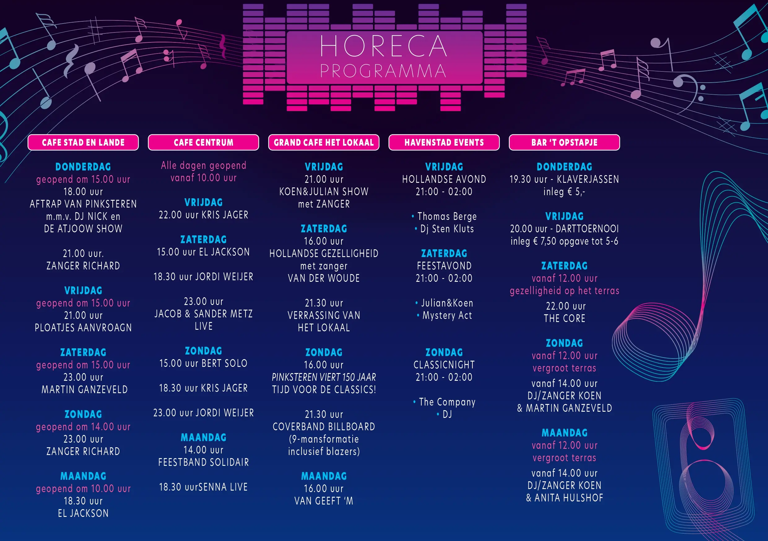 Ook het dijkprogramma zal er weer zijn en anders dan andere jaren. Een heel ander geluid dan de zaterdagavond. Een mix van gitaar, jonge jeugd en ons oude concept van volksfeest met gezellige muziek.ย