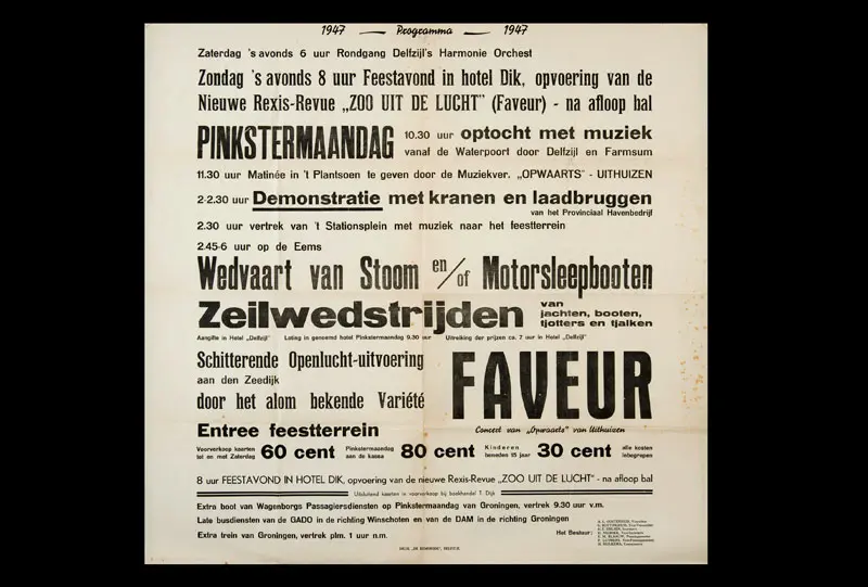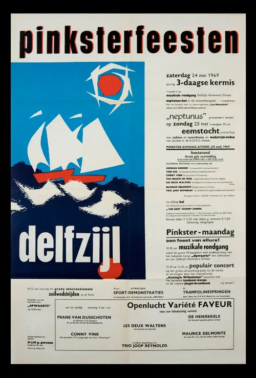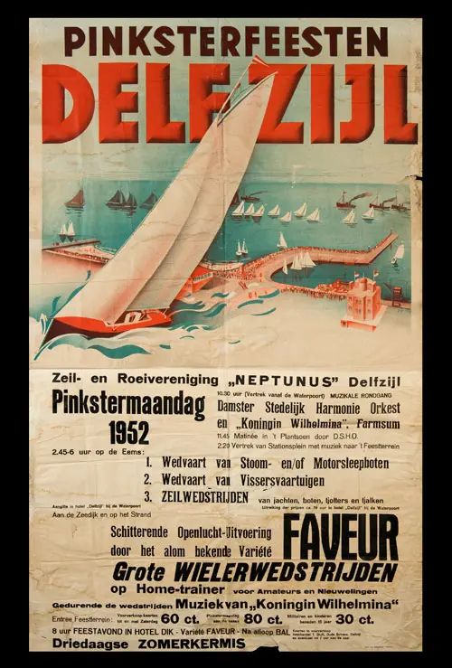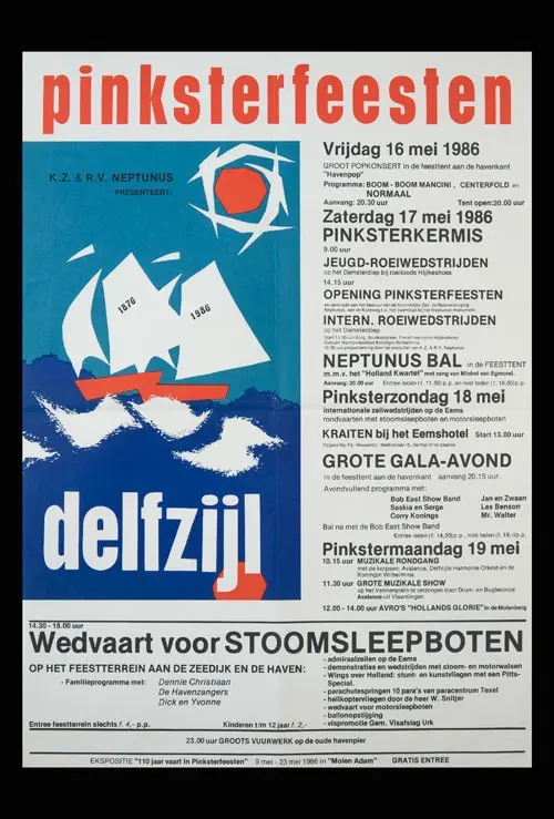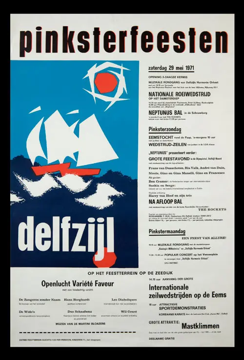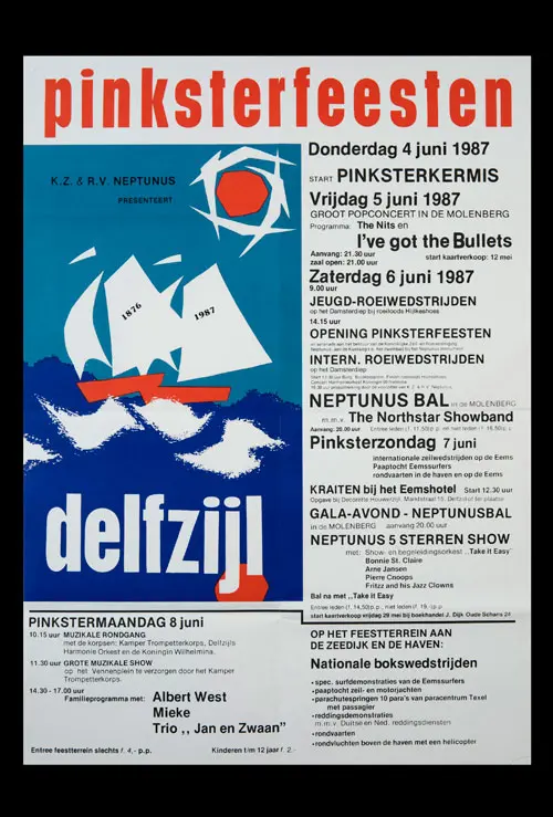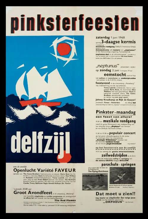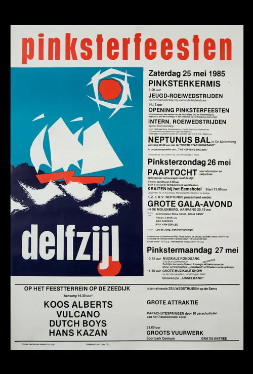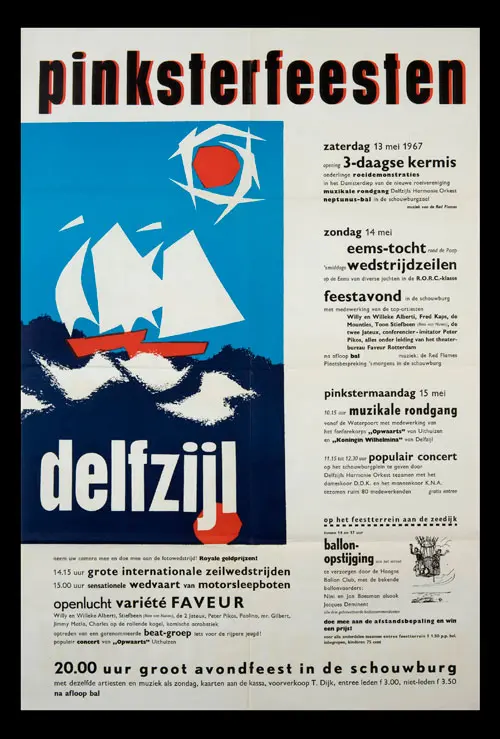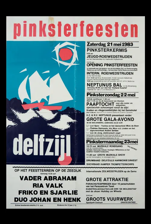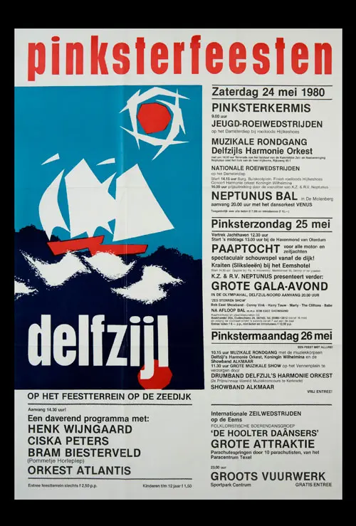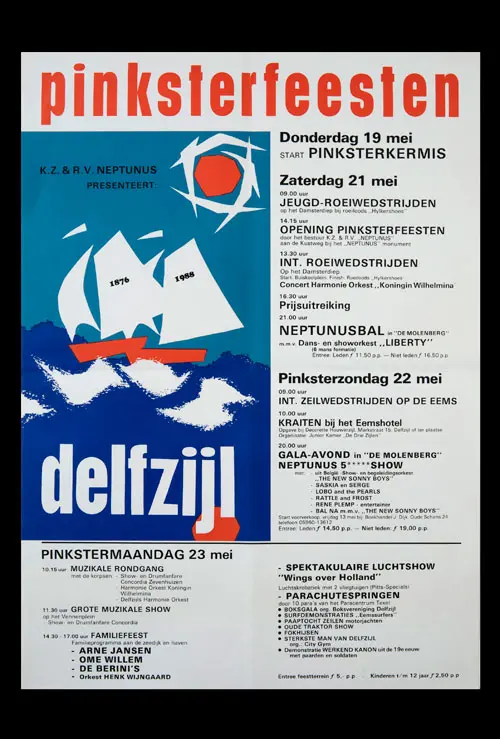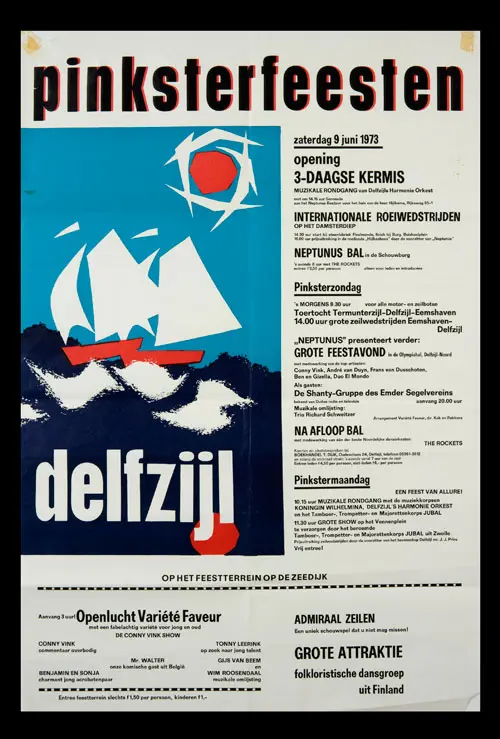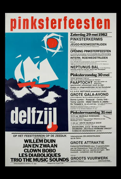 Bekijk historische posters van de Pinksterfeesten en zie hoe stijl, sfeer en communicatie door de jaren heen zijn veranderd.