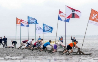 Het krait’n oftewel sliksleeën buitendijks nabij Het Eemshotel. Een krait is een soort kruising tussen een slee en